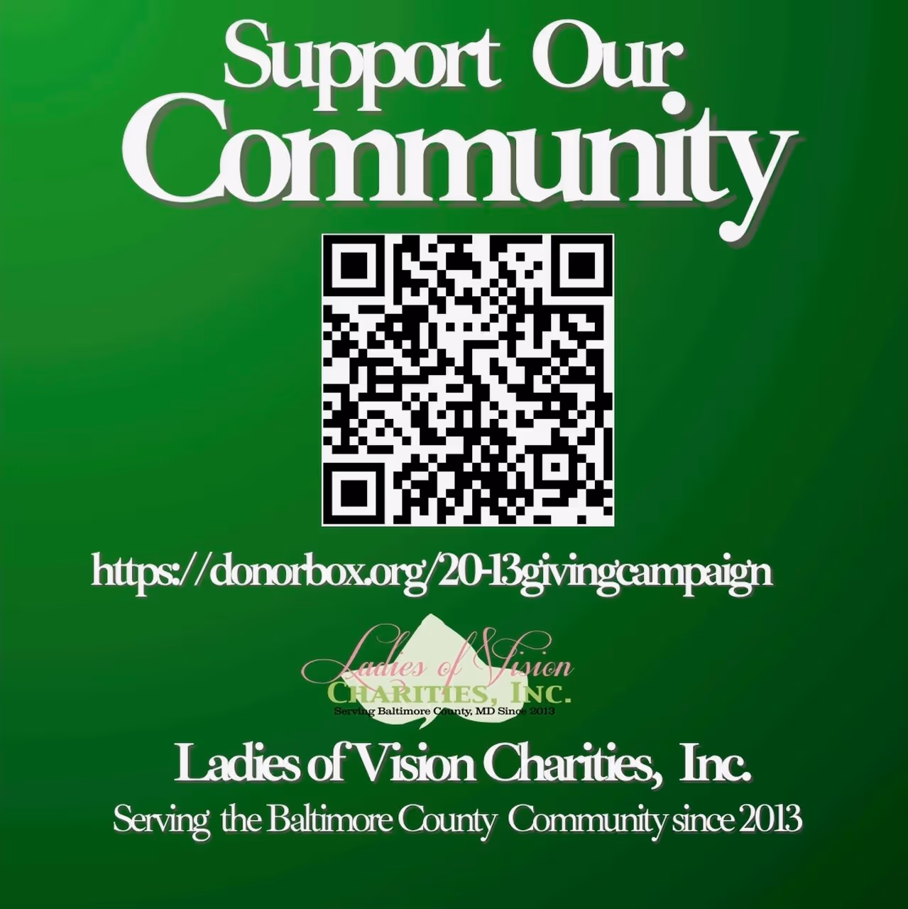 LOV Charities, Inc. is a non-profit organization. Your generous contribution makes it possible for us to positively impact the Baltimore County Community.